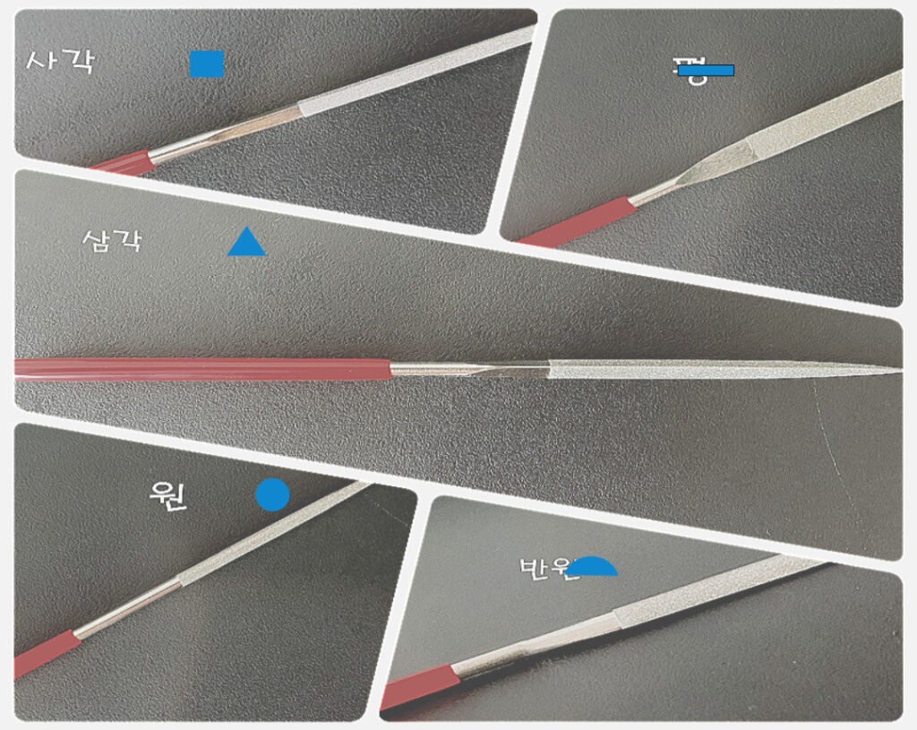 - 각진 면 모서리 연마 시: 사각형, 삼각형 야스리